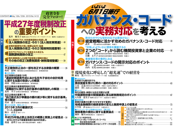 2015年5月10日・20日合併増大号目次 |